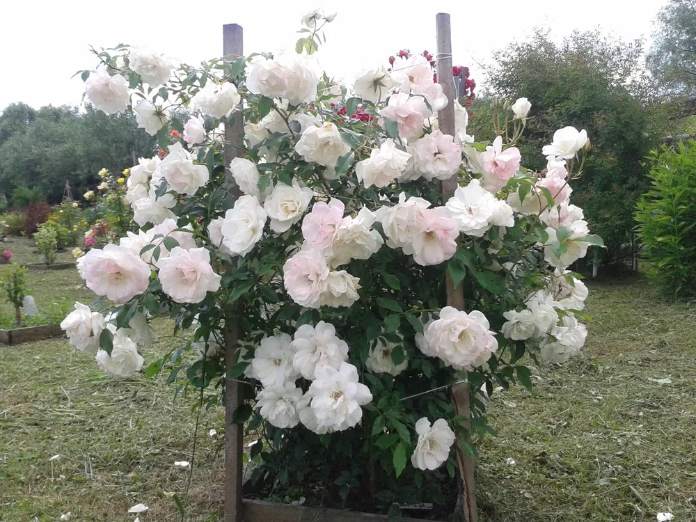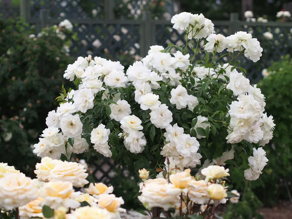 При посадке розы Клайминг Айсберг необходимо позаботиться о хорошей опоре для вьющихся побегов.
