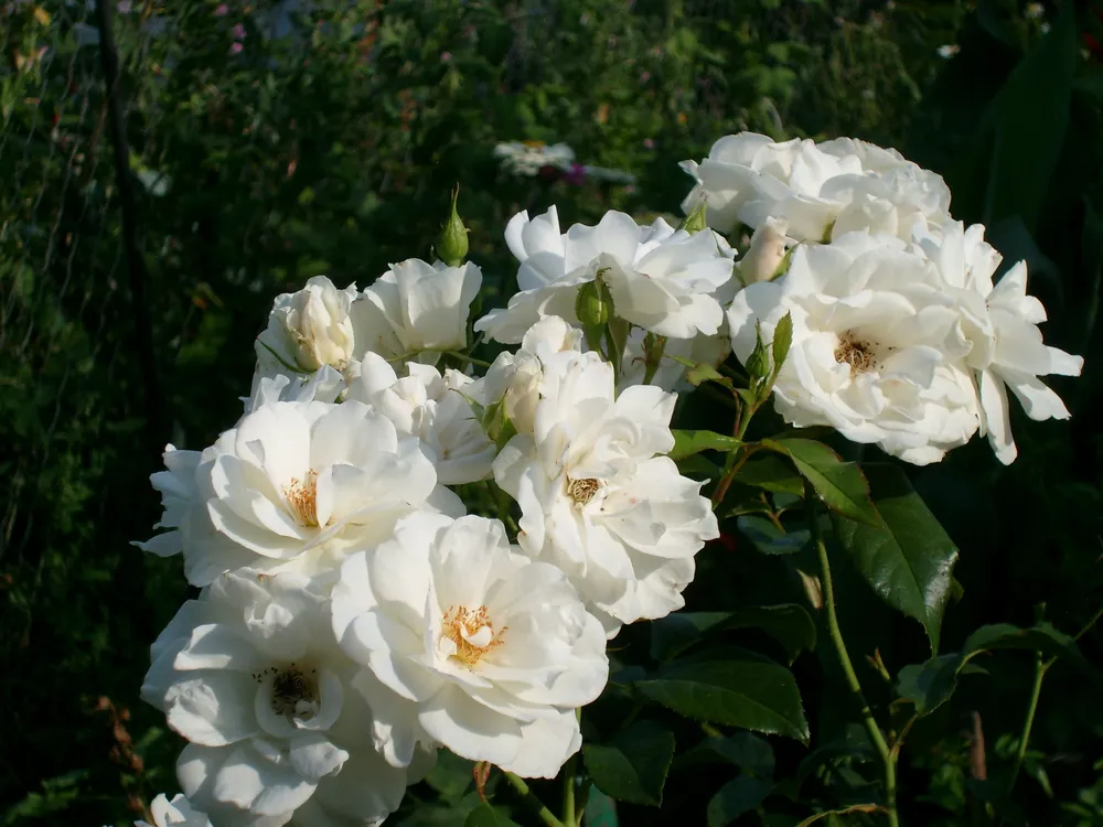 В сравнении с некоторыми другими белыми розами, например, ‘Iceberg’, у Шнеевитхен более плотные и массивные цветки.