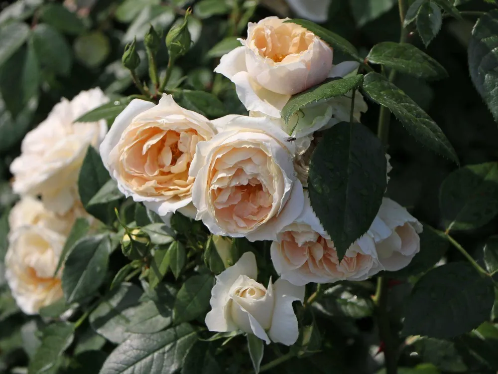 Поливать необходимо обильно, чтобы влага проникала глубоко в почву к корням. Избегайте попадания воды на листья розы, так как это может способствовать развитию грибковых заболеваний.