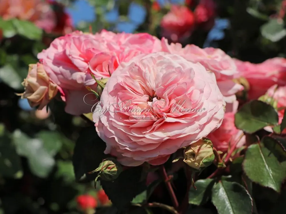Мария Тереза – это классическая английская роза с пышными, высокоценными цветками. Бутоны постепенно раскрываются от розово-красного до бледно-кораллового цвета, образуя чашевидные цветы диаметром около 10 см. Цветение обильное и продолжительное, зацветает в начале июня и продолжается до поздней осени. Сорт отличается не только красотой цветов, но и благоуханием, которое распространяется на довольно большой радиус.
