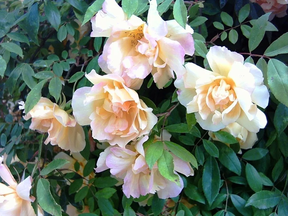 Роза Мон Блан – это восхитительный сорт, покоряющий своей нежностью и изысканностью. Она принадлежит к группе чайных роз и отличается красивыми, махровыми цветками белого цвета с лёгким оттенком крема. Цветы розы Мон Блан собраны в соцветия по 3-5 штук, что придает ей особую пышность и грациозность.