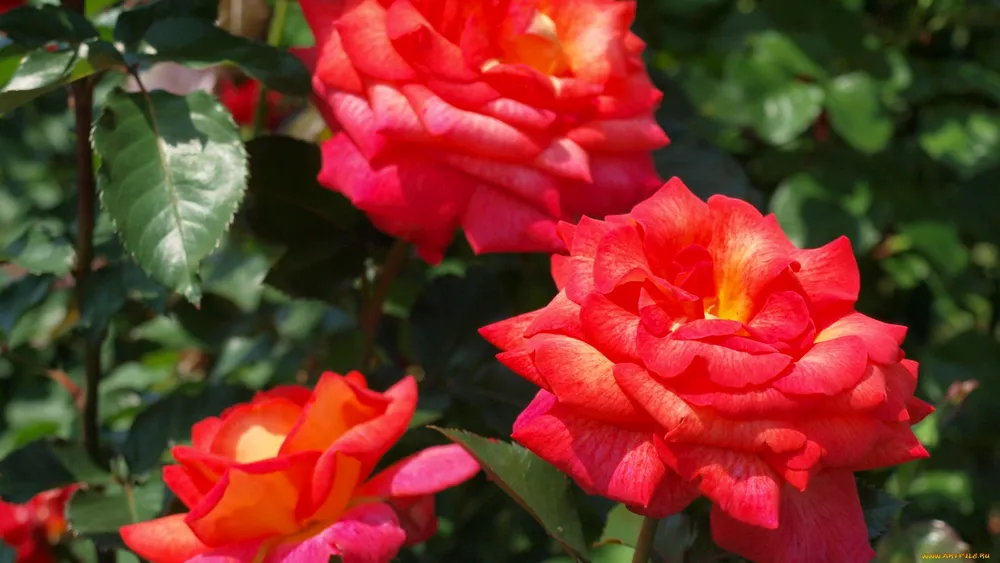 Другие популярные сорта, такие как ‘New Dawn’ или ‘Blaze’, обладают более легким ароматом и менее махровыми цветками.