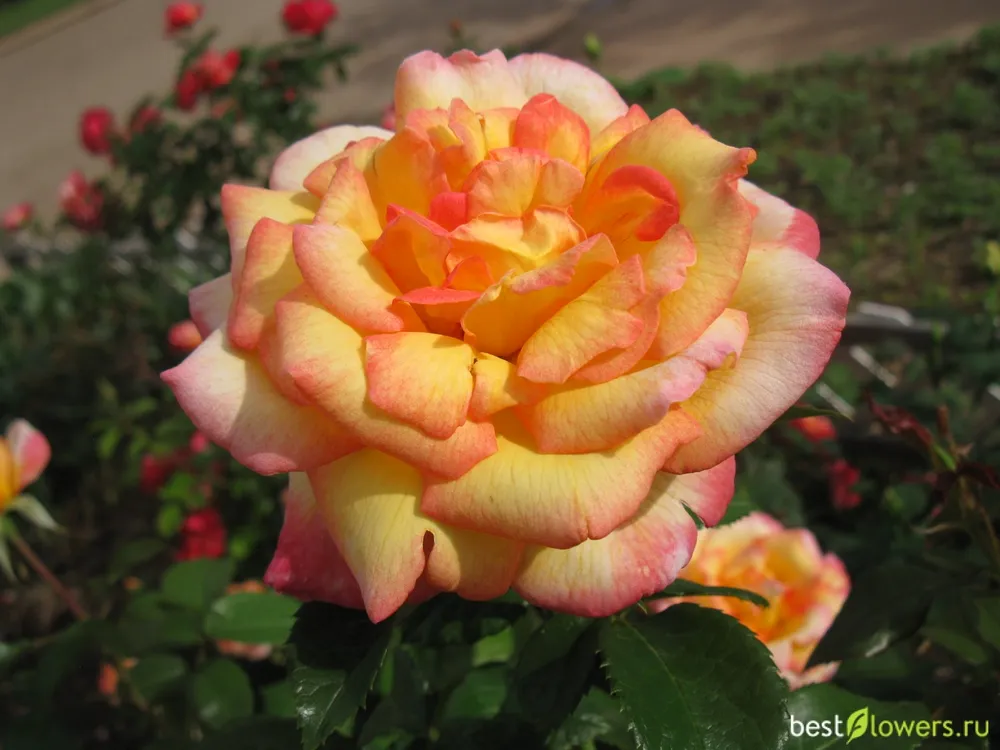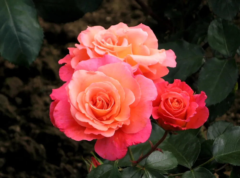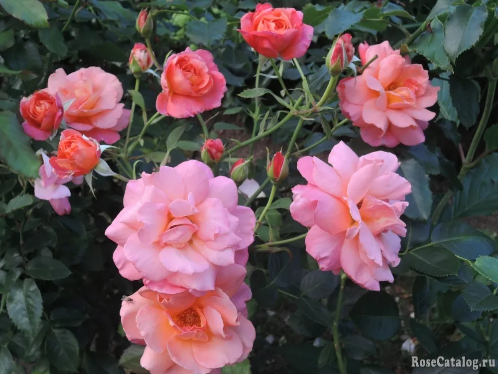 Эта роза поражает своей красотой: крупные, плотные цветки в форме чашечки, окрашенные в насыщенный коралловый оттенок с золотисто-красными бликами, украшены множеством лепестков. Бутоны розы Шейлас Парфюм обладают особым шармом — они крепко сжаты, словно тайно хранящие свой волшебный аромат. Постепенно расцветая, роза раскрывает все свои грани, создавая впечатление нежной и элегантной танцовщицы.