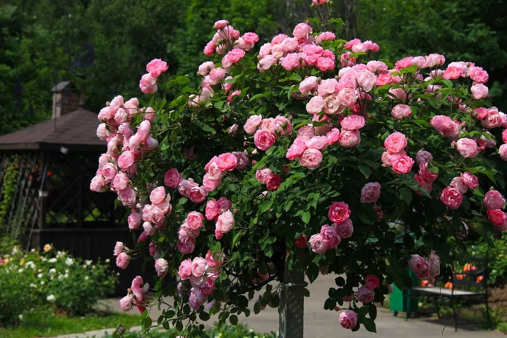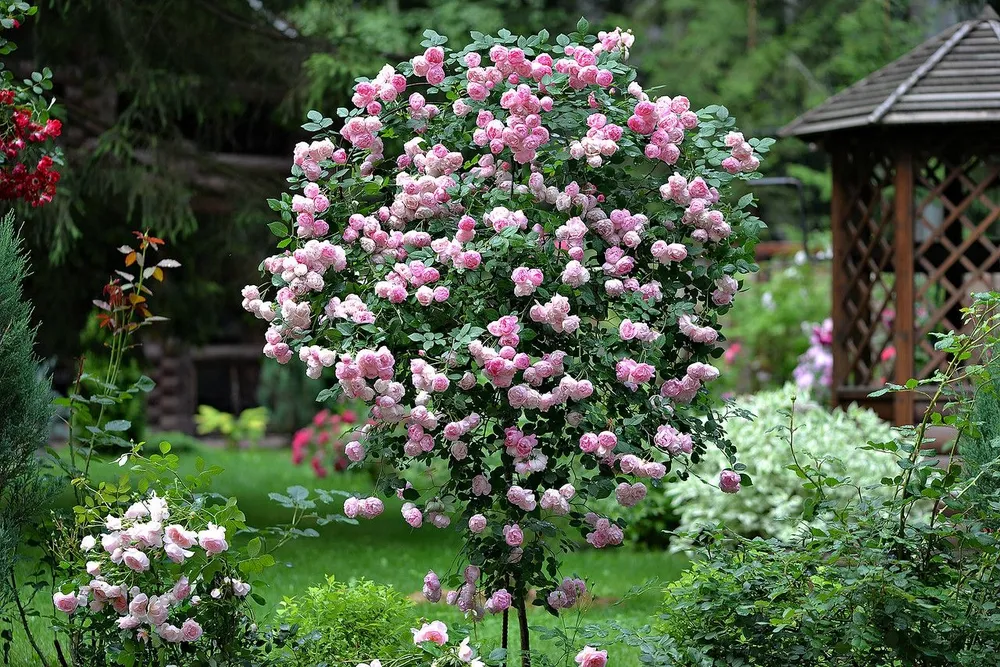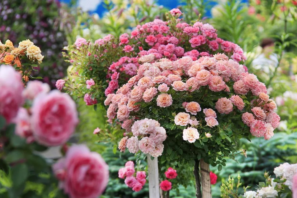 Беатрис выделяется среди других штамбовых роз своей нежной окраской, идеальным кустообразованием.