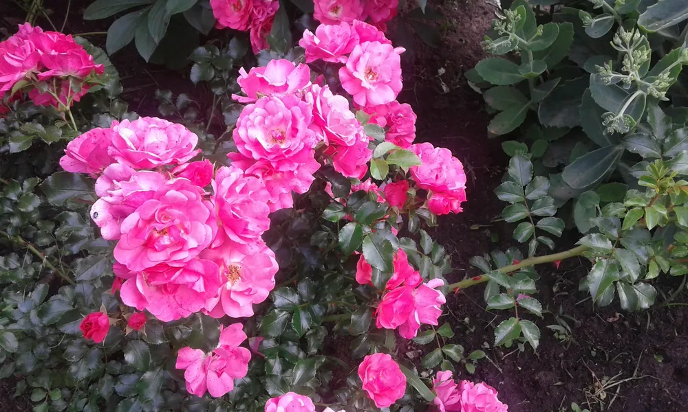- Мульчирование: после посадки розы, почву вокруг куста рекомендуется замульчировать органическим материалом (например, компостом или древесными опилками). Это поможет сохранить влагу в почве и защитит корни от перегрева.
