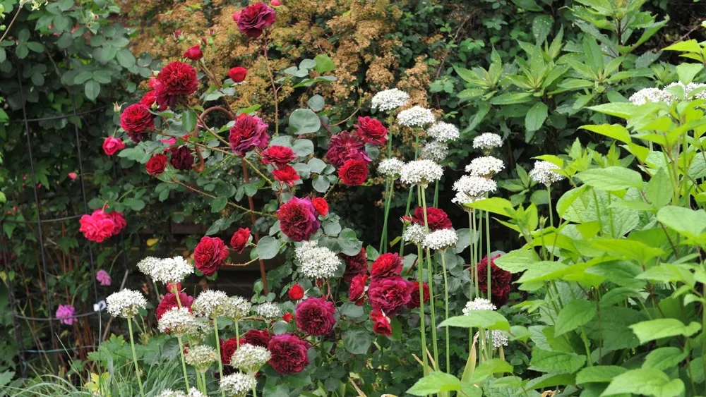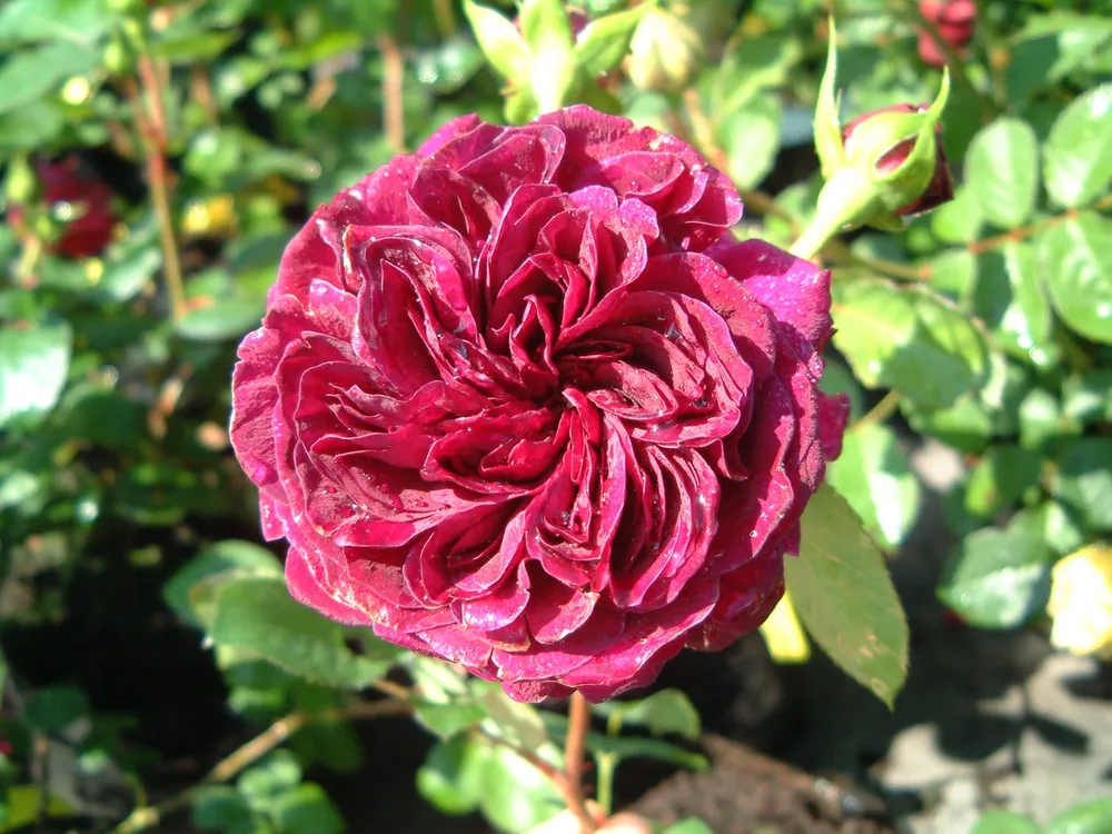 Роза Традескант – это уникальный сорт, который покорил сердца садоводов своей неприхотливостью и непревзойденной красотой. Он относится к группе плетистых роз и славится своими обильными цветками с легким фруктовым ароматом. Крона сорта густая, пышная, образовывает прекрасные кусты высотой до 3 метров.