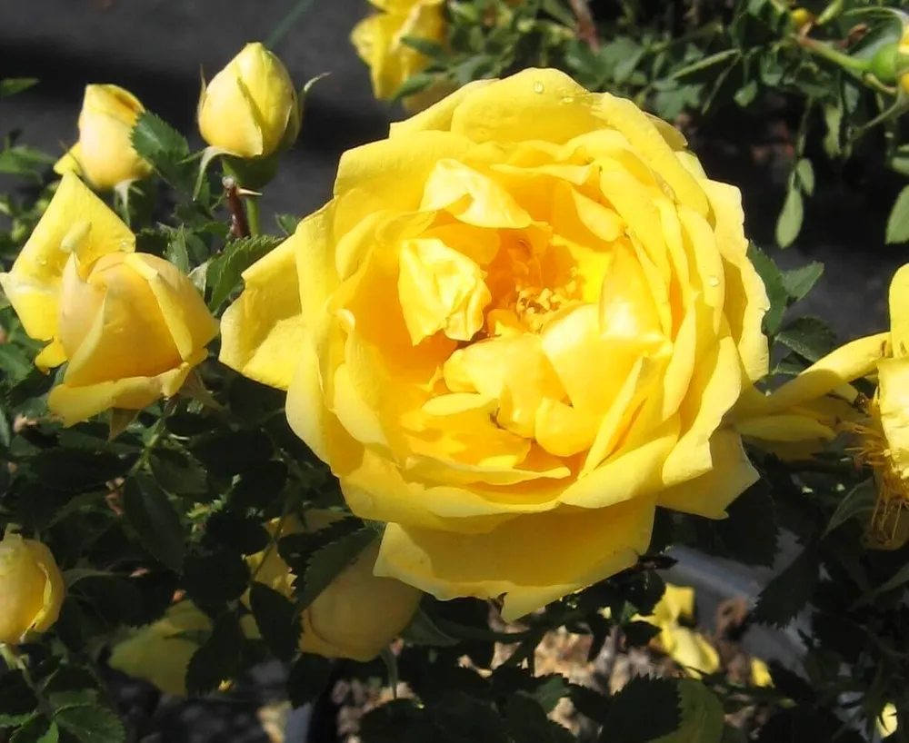 Йеллоу Долл – это солнечный сорт розы. Для обильного цветения ей необходимо как минимум 6 часов прямых солнечных лучей в день. Располагая розу на затененном месте, вы рискуете получить меньше цветов и более бледный цвет лепестков.
