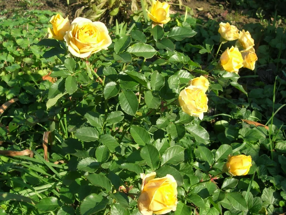Для обильного цветения Золотистой розы рекомендуется подкармливать её в течение всего сезона. В начале вегетации (апрель-май) необходимо внести азотные удобрения, которые стимулируют рост побегов.