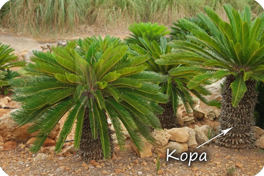 Цикасы относятся к семейству Цикасовые (Cycadaceae), но в зависимости от вида могут иметь различную высоту, форму листьев и окраску.