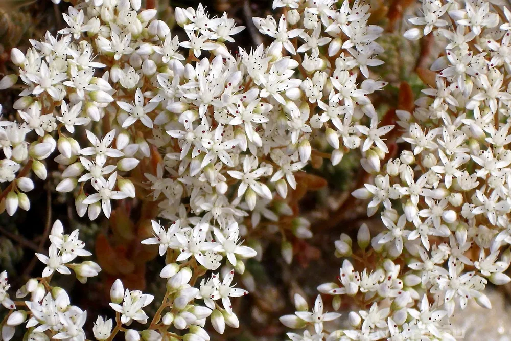 Седум белый Хлоротикум, как его часто называют, отличается не только красивыми белыми цветами, но и необычным окрасом листьев: они серебристо-зеленые с легким пушистым налетом. Это растение прекрасно вписывается в ландшафтный дизайн, благодаря своей компактности и неприхотливости к условиям содержания.