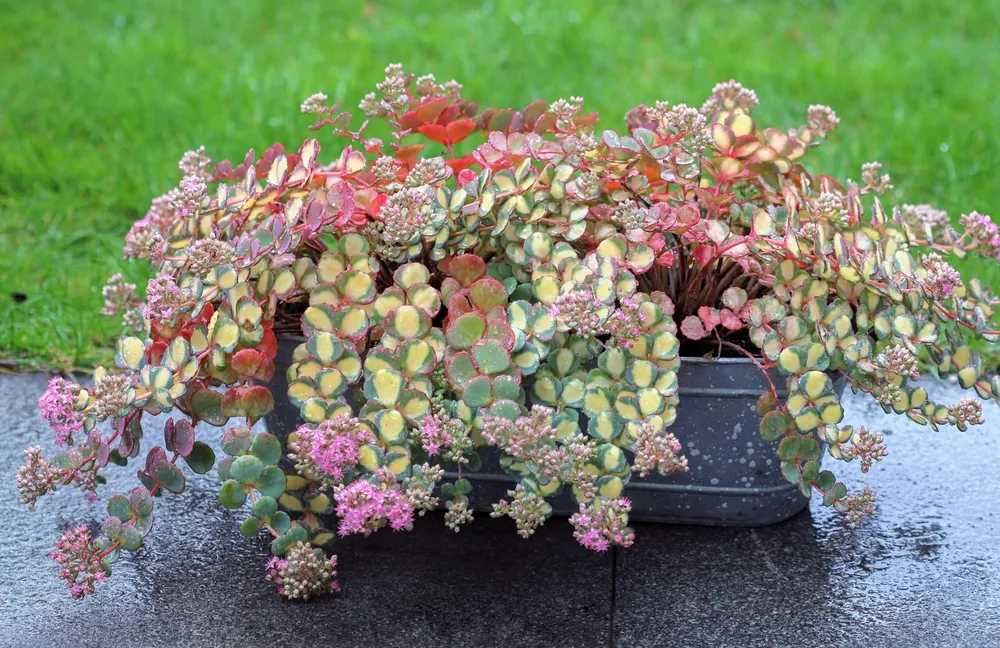 Седум Медиовариегатум – суккулент и накапливает влагу в своих листьях. Поэтому полив ему необходим умеренный.