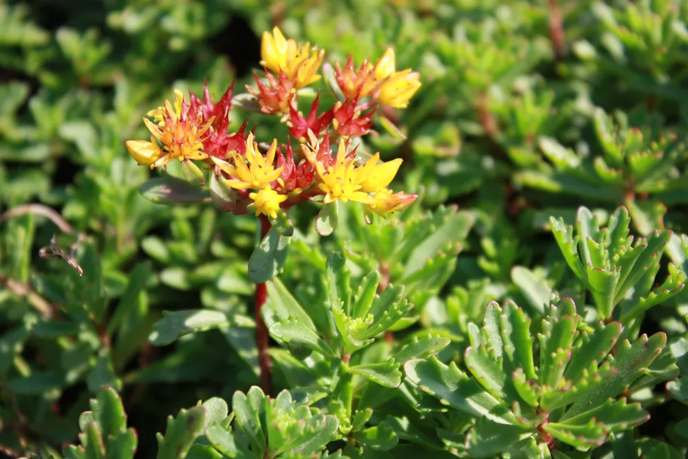 Седум цветоносный Вейхенстефандер Голд имеет тенденцию к разрастанию.