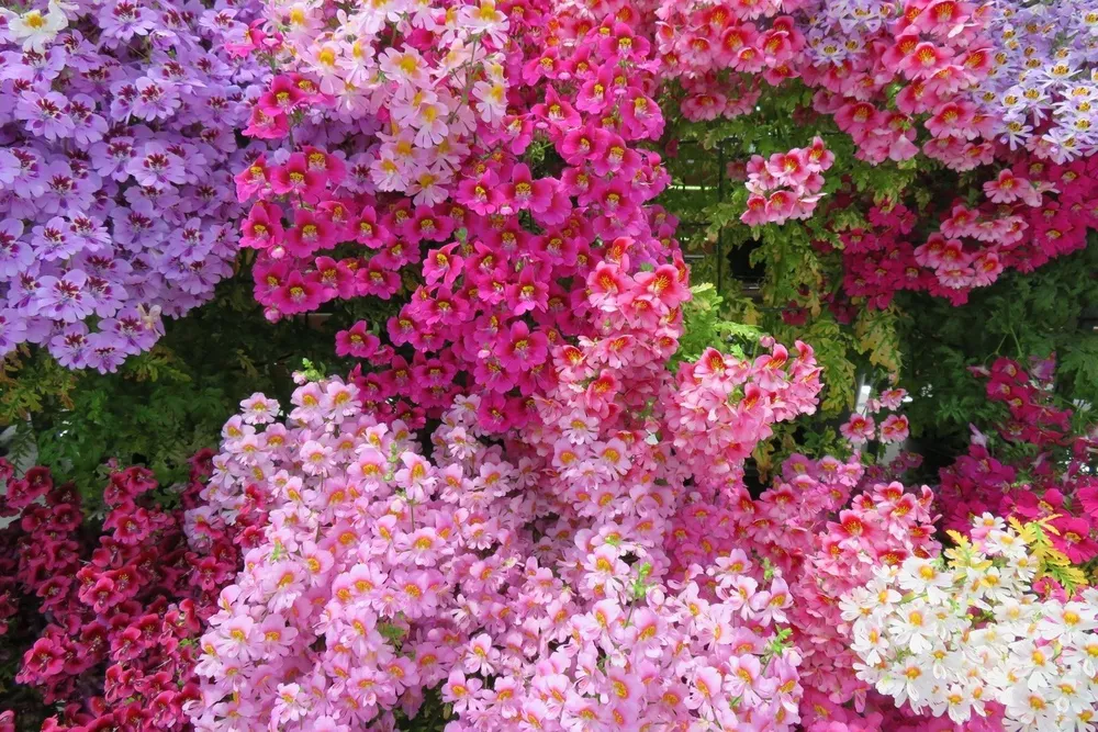 Схизантус имеет много общего с некоторыми другими декоративными растениями, но обладает своими уникальными чертами. Например, по внешнему виду его цветы напоминают петуньи или папоротники. В то же время, в отличие от петуний, которые цветут в основном летом, схизантус может цвести до самых заморозков, а при хорошем уходе и зимой.