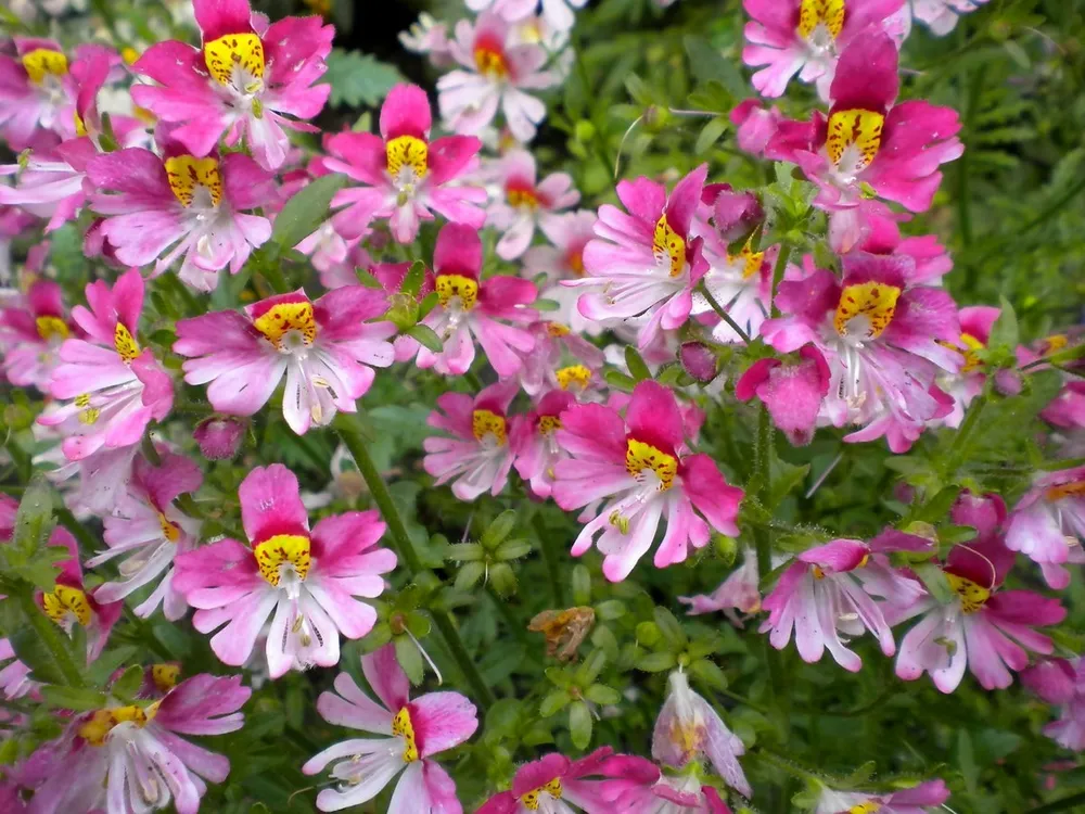 Схизантус визетонский Гибридная отличается от других сортов более ранним цветением, обильным количеством цветков и устойчивостью к болезням. По сравнению с однолетними видами гибрид имеет более длительный период цветения, зацветая уже в начале лета и продолжая радовать своим цветением до самых заморозков.