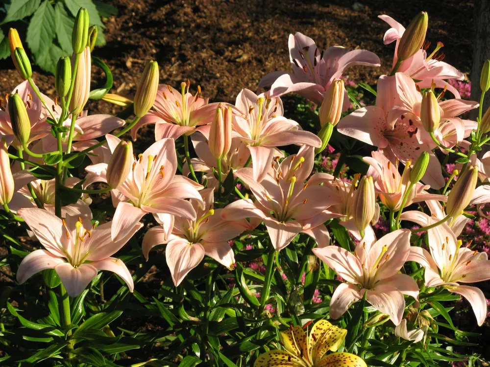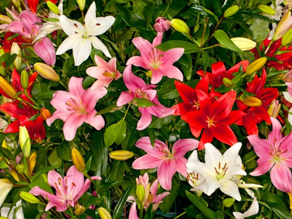 Смесь азиатских лилий – это восхитительное сочетание разных сортов этих прекрасных цветов, создающее яркие и красочные композиции в садах. Азиатские лилии произошли из Восточной Азии и стали популярны благодаря своей неприхотливости и длительному цветению. В отличие от восточных или трубчатых лилий, азиатские лилии характеризуются более простыми формами цветков и отсутствием аромата, но они не уступают в красоте. Именно поэтому их часто используют для создания смешанных клумб, бордюрных посадок и цветочных композиций в ландшафтном дизайне.
