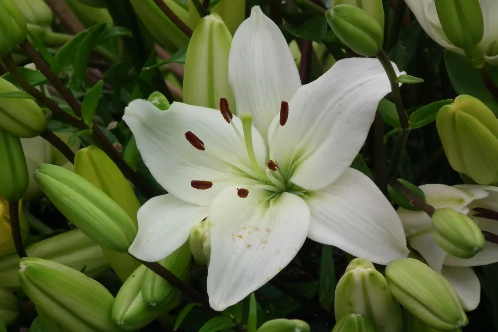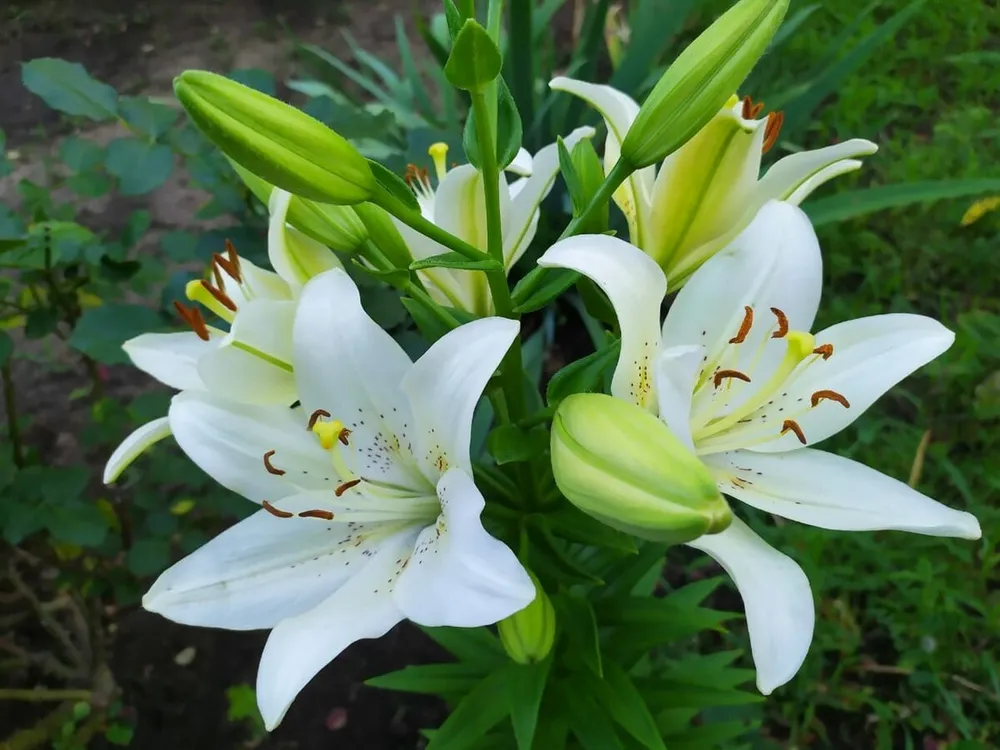 Для обильного цветения азиатские лилии нуждаются в регулярной подкормке. В период роста (с весны до середины лета) используйте азотные удобрения, чтобы стимулировать рост листьев. С началом формирования бутонов переходите на фосфорно-калийные удобрения, которые будут способствовать обильному цветению.