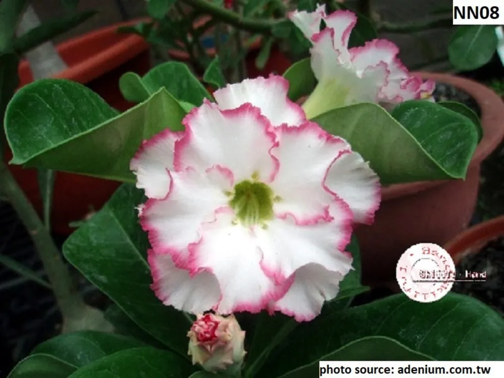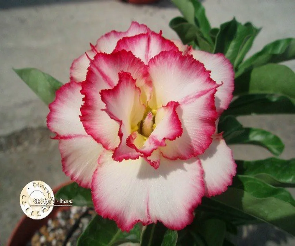 Сорт «Розовый лепесток» выделяется своими крупными, махровыми цветами. Цветы этого адениума – нежно-розовые с белым центром. Он относится к группе высокорослых адениумов и может достигать в высоту до 1 метра.