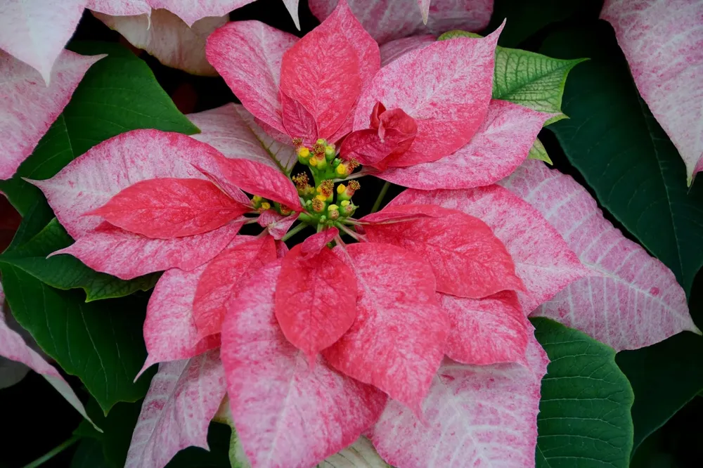 Пуансеттия, также известная как рождественская звезда, зачаровывает сердца своим ярким цветом во время праздничного сезона. Это тропическое растение из семейства молочайных произрастает в Центральной Америке и Мексике. Сорта пуансеттии удивительны своей разнообразием: от классических красных оттенков до нежно-розовых, белых и даже персиковых тонов.