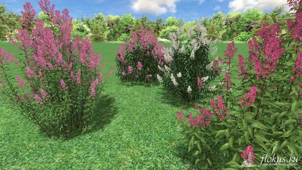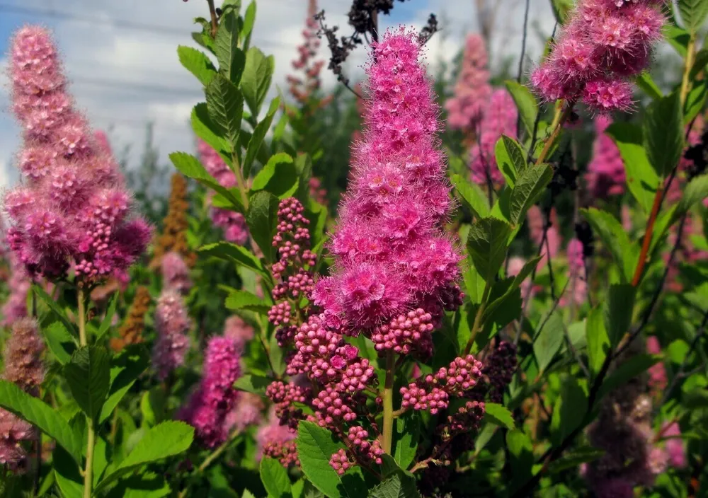 Спирея иволистная имеет множество сортов, каждый из которых обладает своими особенностями. Например, сорт ‘Gold Flame’ отличается золотисто-желтой окраской листьев, а сорт ‘Vanhouttei’ – крупными розовыми соцветиями.