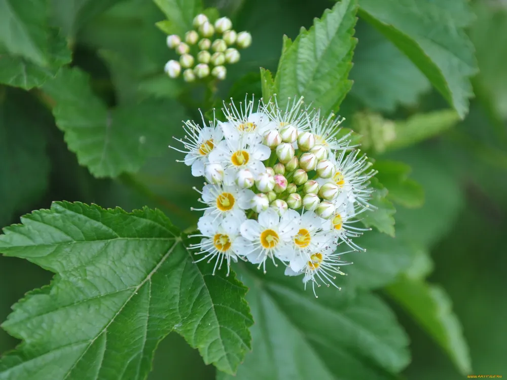 - Санториниум — это популярный сорт спиреи, который формируют в виде раскидистого кустарника. Санториниум цветет обильно и красочно, его цветки напоминают маленькие шары