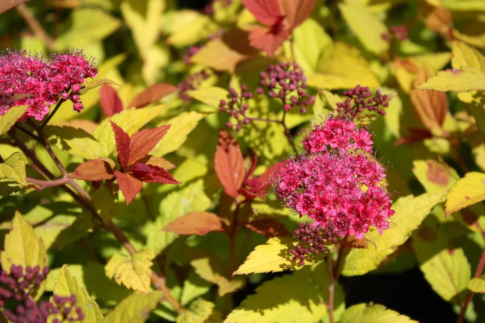 Спирея японская ‘Неон Флеш’ отличается от других сортов спиреи своей ярко выраженной листвой с эффектом перелива цветов. ‘