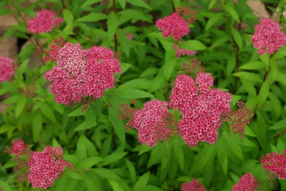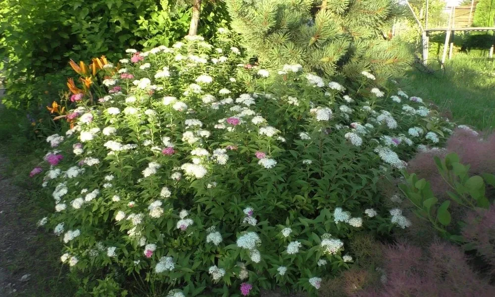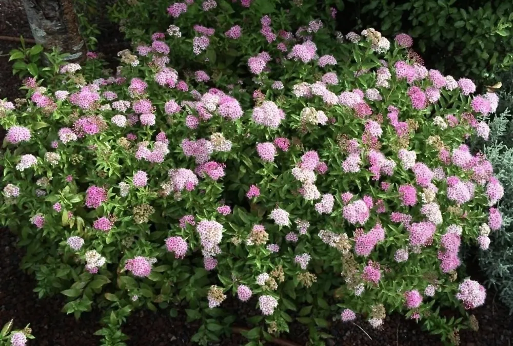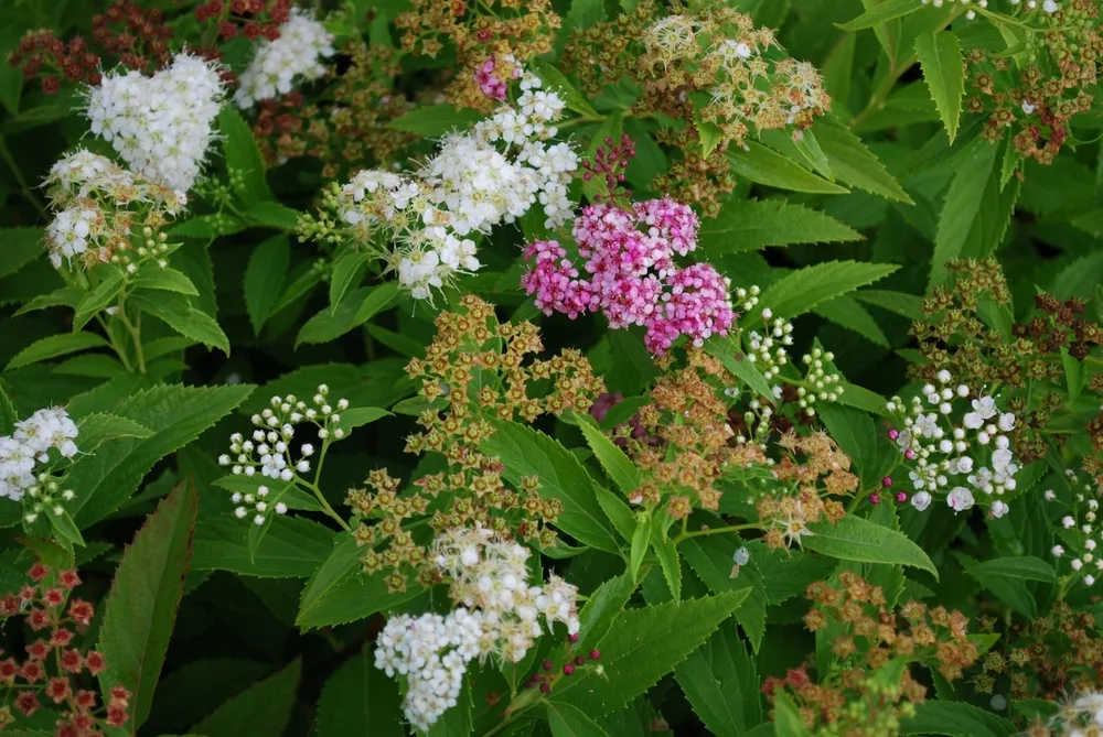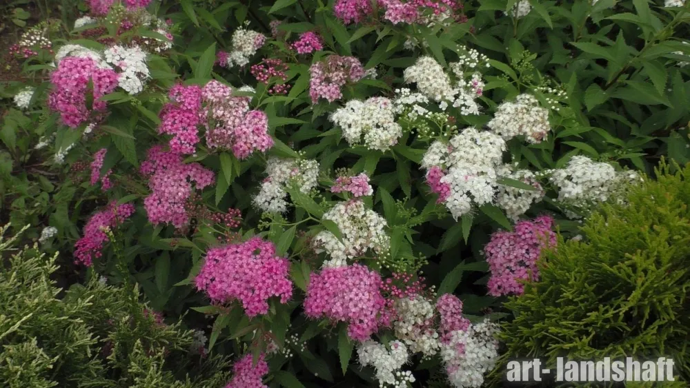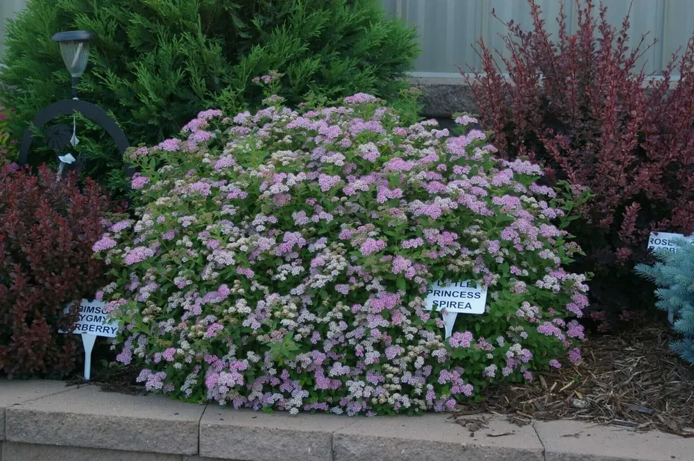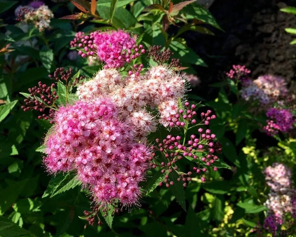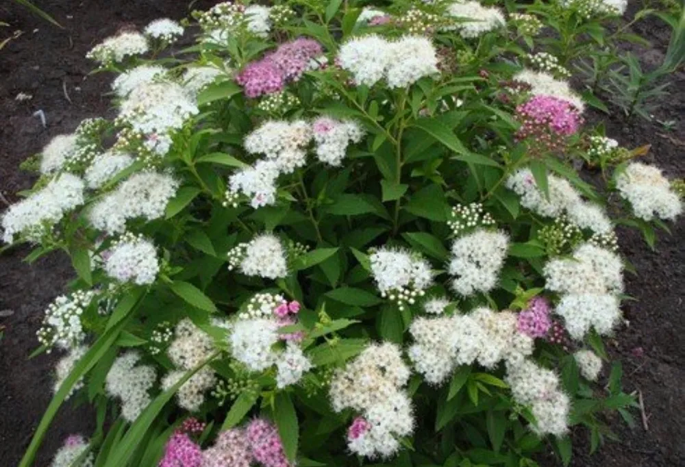 - Сорт ‘Anthony Waterer’: известен своими ярко-розовыми цветками.