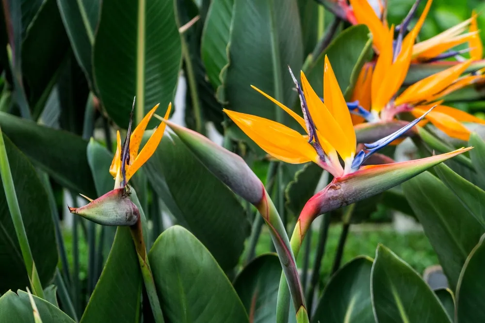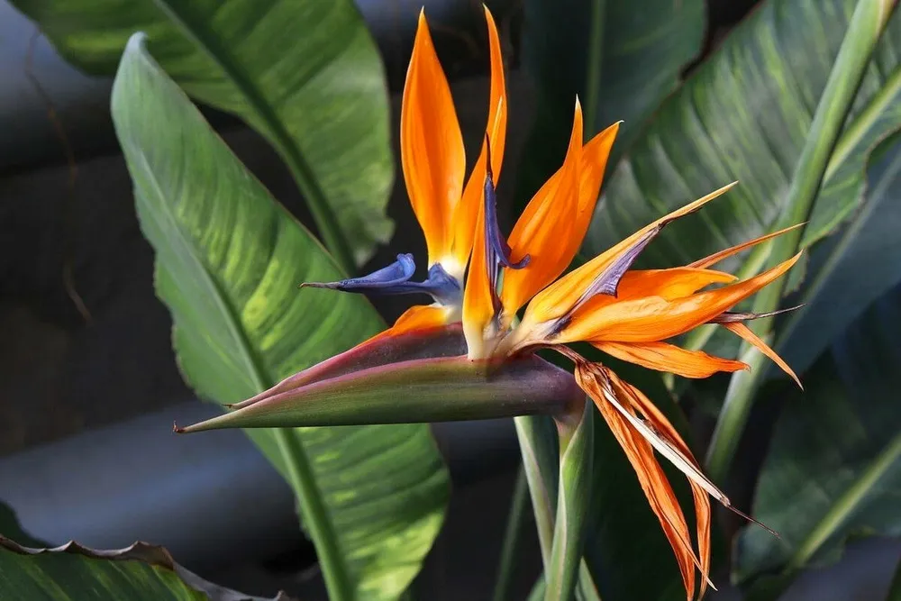 Стрелиция Райская Птица – вечнозелёное многолетнее растение, достигающее в высоту до двух метров. Листья крупные, мясистые и темно-зеленые, расположенные на длинных черешках. Цветение длится почти круглый год, но пик приходится на весенне-летний период.