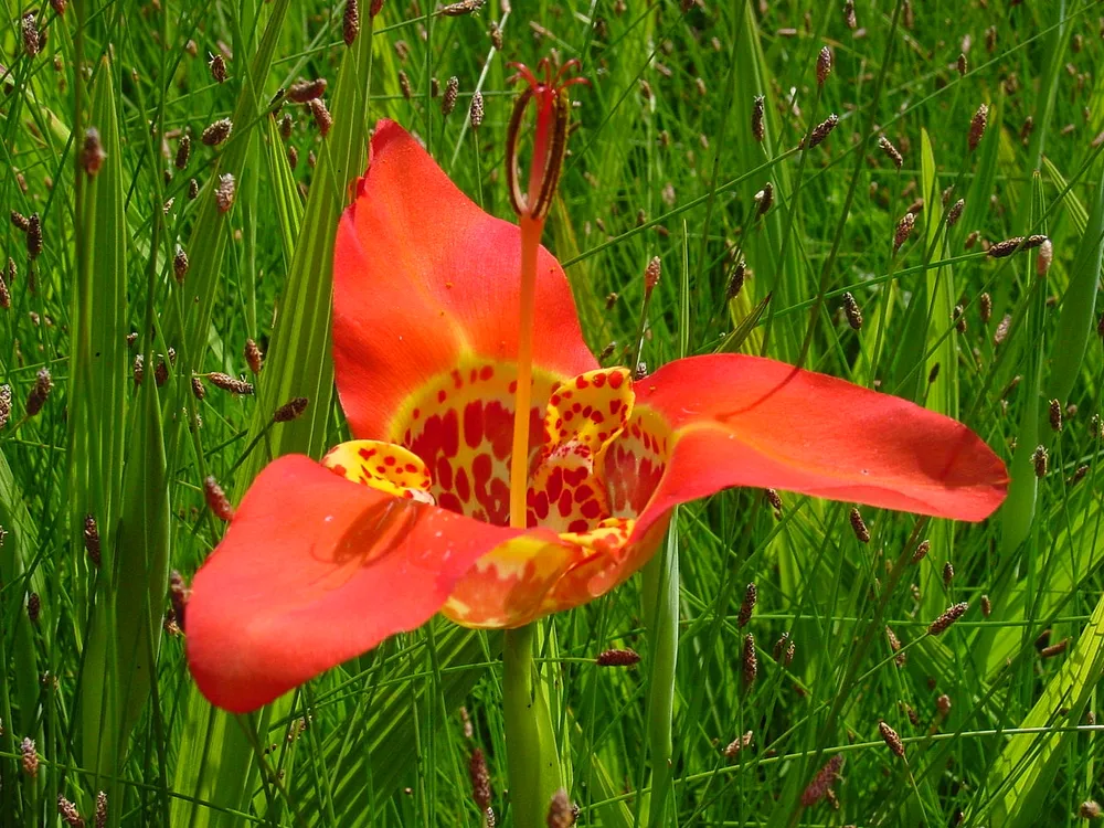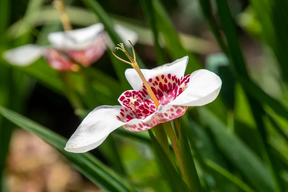 Например, Тигридия ‘Sundown’ отличается яркими оранжево-красными цветками с белыми полосками. А Тигридия ‘Aurora’ обладает розовыми цветами с более выраженными полосами.