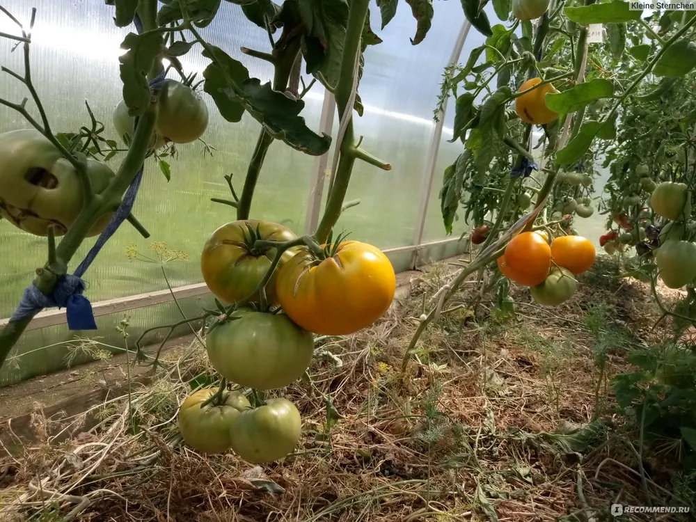Томат Гигант Лимонный – индетерминантный сорт, поэтому его необходимо формировать. Для этого удаляют все пасынки, появляющиеся в пазухах листьев.