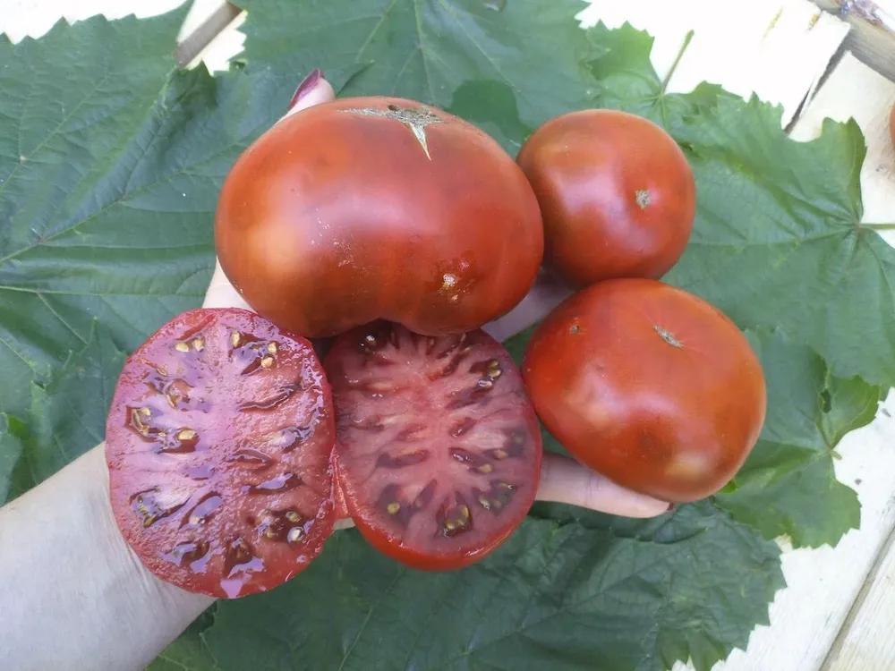 Свое название «Шоколадный банан» этот сорт получил благодаря необычной окраске своих плодов. Цвет спелых помидор варьируется от темно-красного до бордового, почти шоколадного оттенка, а мякоть имеет сладковато-кисловатый вкус с приятной кислинкой и лёгким фруктовым привкусом. Форма томата – округлая, плоды среднего размера, достигая в среднем 250 граммов. К тому же Шоколадный банан обладает высокой урожайностью.