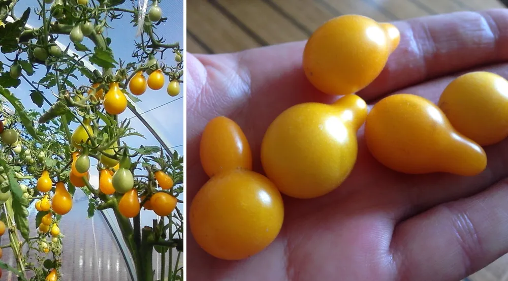Сорт «Золотая гроздь» относится к среднеспелым томатам – от всходов до сбора урожая проходит около 110-120 дней. Его привлекательность заключается не только в вкусе плодов, но и в их необычной форме: они округлые с легким изгибом, напоминают ягоды винограда. Окраска помидоров меняется по мере созревания от зеленого до насыщенно-желтого цвета, что придает кусту особую красоту.
