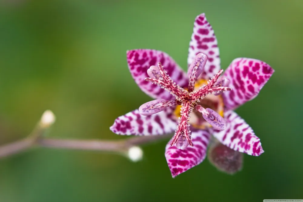 Трициртис Блю Споттед – это непревзойденное украшение любого сада, благодаря своему уникальному внешнему виду и неприхотливому характеру. Сорт, выведенный селекционерами сравнительно недавно, быстро завоевал популярность у цветоводов любителей за свою необычную окраску и долгое цветение. Это многолетнее травянистое растение с узкими, мечевидными листьями и яркими, пурпурно-синими цветами, на которых расположено множество белых пятнышек, как будто созданных из звездного неба. Высота растения достигает около 60-70 см, а в период цветения его куст буквально усыпан красочными соцветиями.