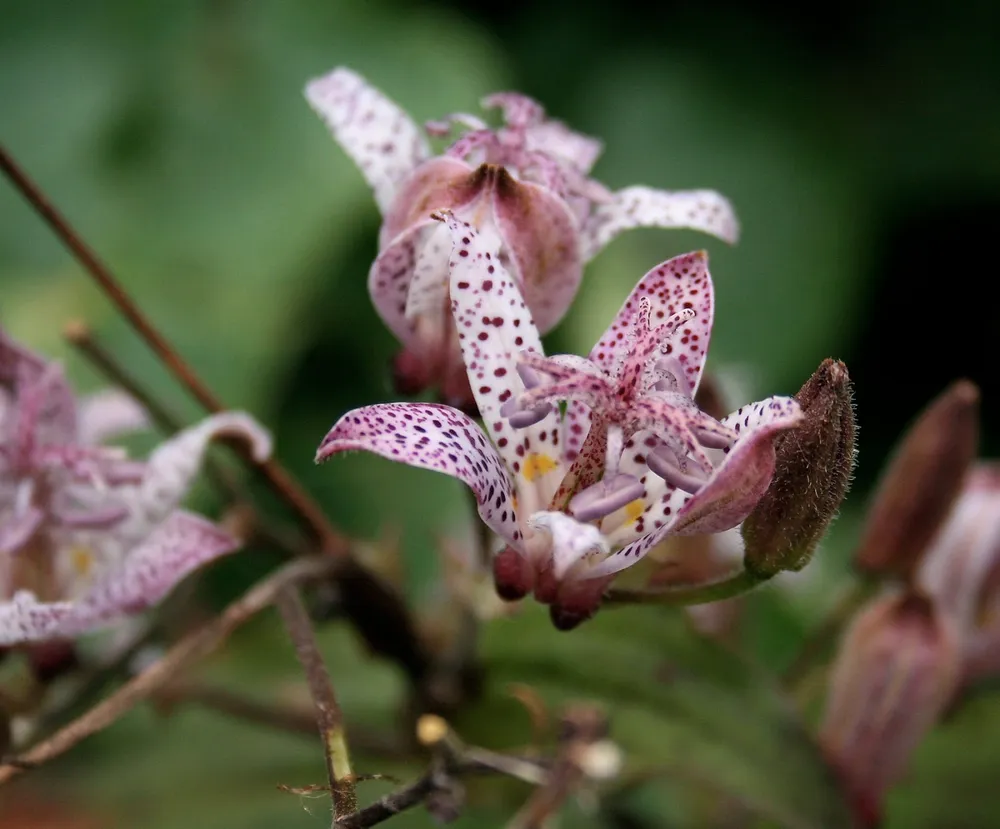 - Трициртис «Сплендор» отличается пышным цветением, но менее устойчив к засухе.