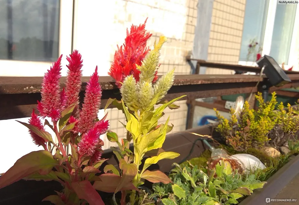 - Сорт Целозия ‘Кармина’ отличается более крупными цветами яркого красного цвета.