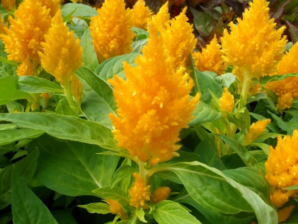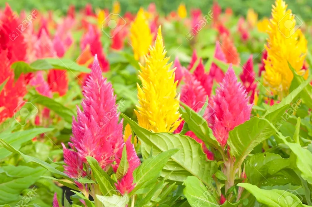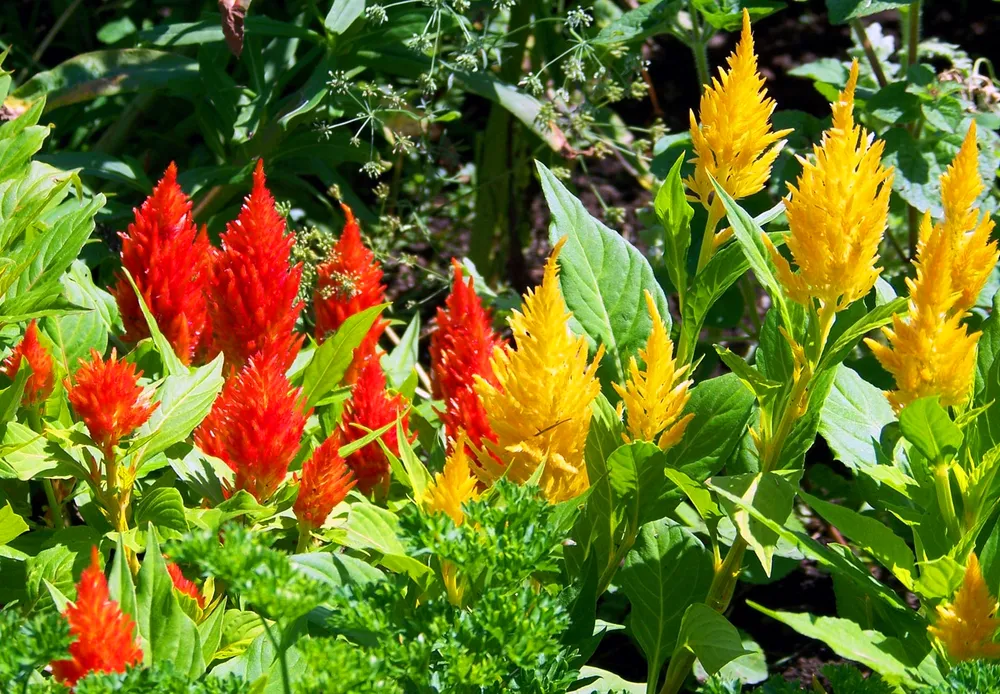 Целозия перистая имеет много различных сортов, отличающихся по высоте, форме соцветий, окраске и текстуре листьев.
