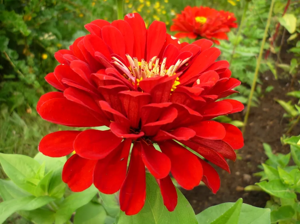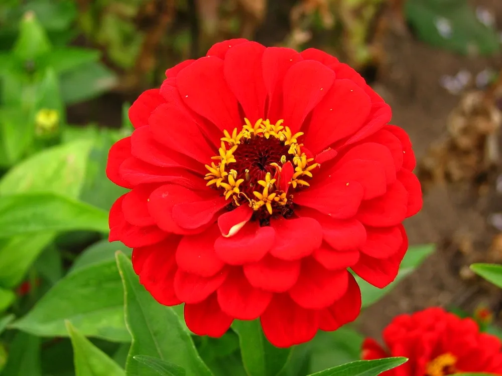 Совет: При посадке Циннии Исполин красный воспользуйтесь опорами, чтобы поддерживать ее стебли и предотвратить их поломку под тяжестью цветков.