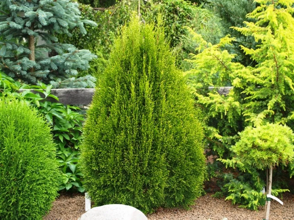 Например, туя восточная ‘Смарагд’ имеет более густую и плоскую крону, а туя западная ‘Холмстед’ — более раскидистую и широкую.