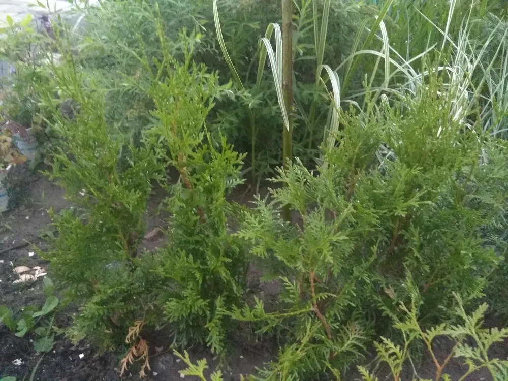- Опрыскивание: В засушливый период полезно опрыскивать тую водой для поддержания влажности воздуха и хвои.
