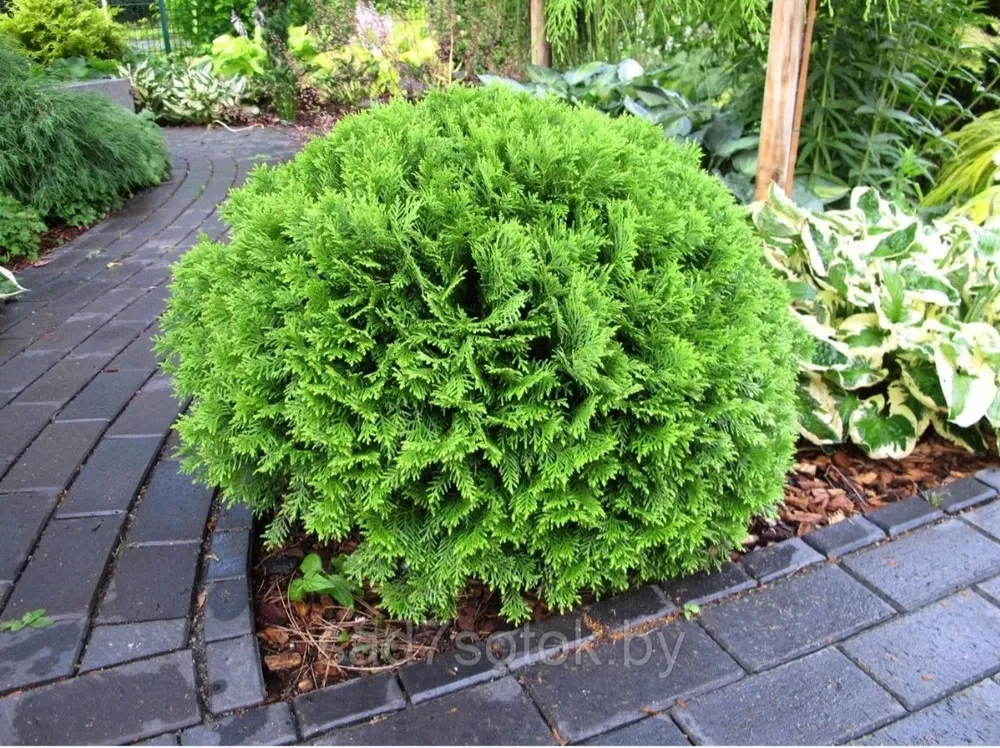 Туя западная ‘Топ’ отличается от других сортов своей компактностью и оригинальной формой кроны. В сравнении с более крупными сортами, такими как ‘Smaragd’ или ‘Green Giant’, она подходит для посадки в небольших садах или контейнерах.