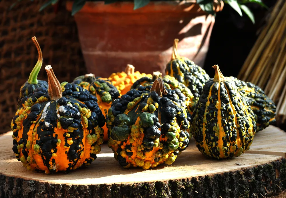 Сравнительно с другими декоративными тыквами, Уют выделяется своей компактностью. Его размеры (до 30 см в диаметре) делают его идеальным для выращивания в ограниченном пространстве. Кроме того, необычная окраска и узор на кожуре тыквы Уют выделяют ее среди других сортов.