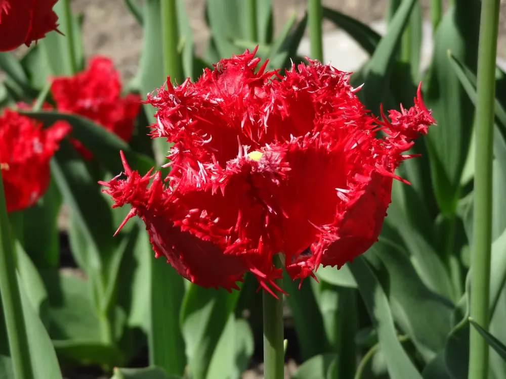 Его яркий красный оттенок с оранжевыми переливами напоминает о жарких тропиках и привносит в сад нотку экзотики. Этот тюльпан относится к группе партенокарпных сортов, то есть его цветки не нуждаются в опылении для образования бутонов. Благодаря своей неприхотливости в уходе он пользуется большой популярностью среди цветоводов-любителей.