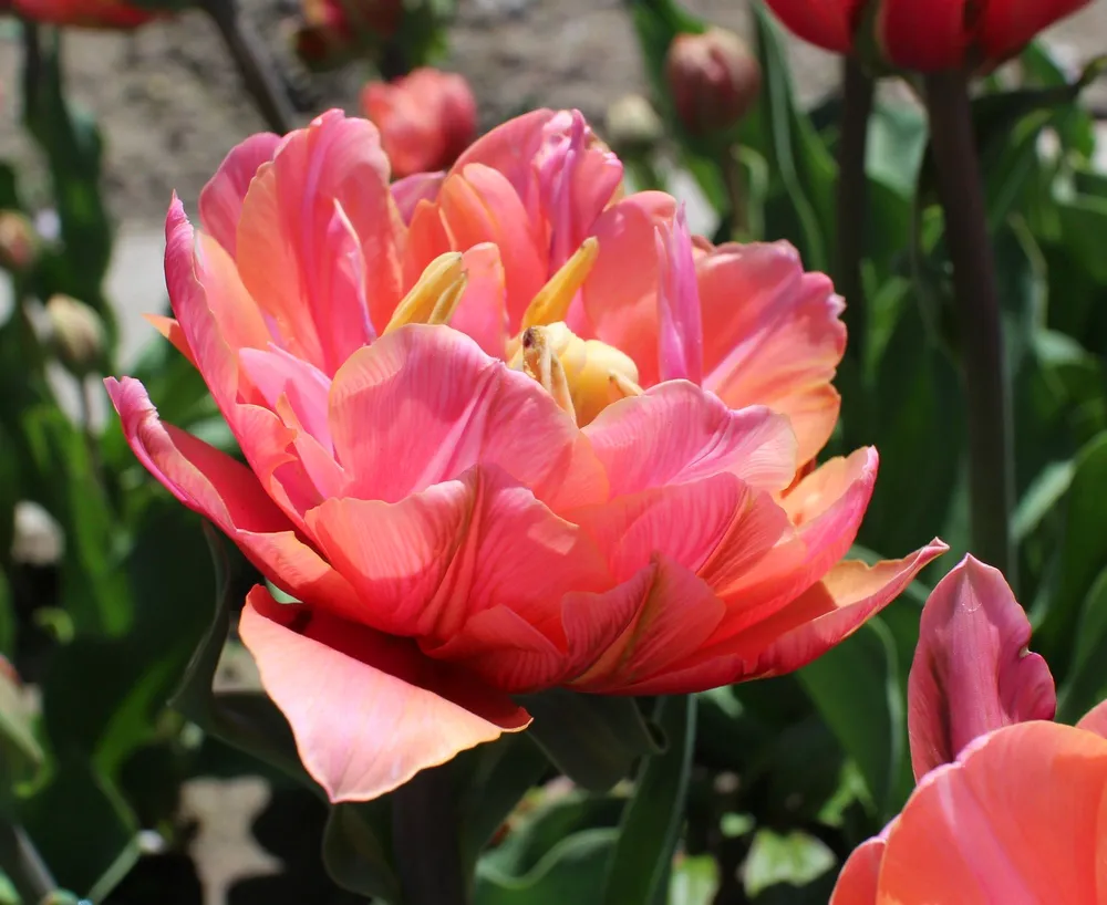 Тюльпан Дабл Полар имеет средний размер цветка и высоту куста. Для поддержания красивого вида рекомендуется удалять отцветшие цветы, чтобы стимулировать образование новых бутонов.