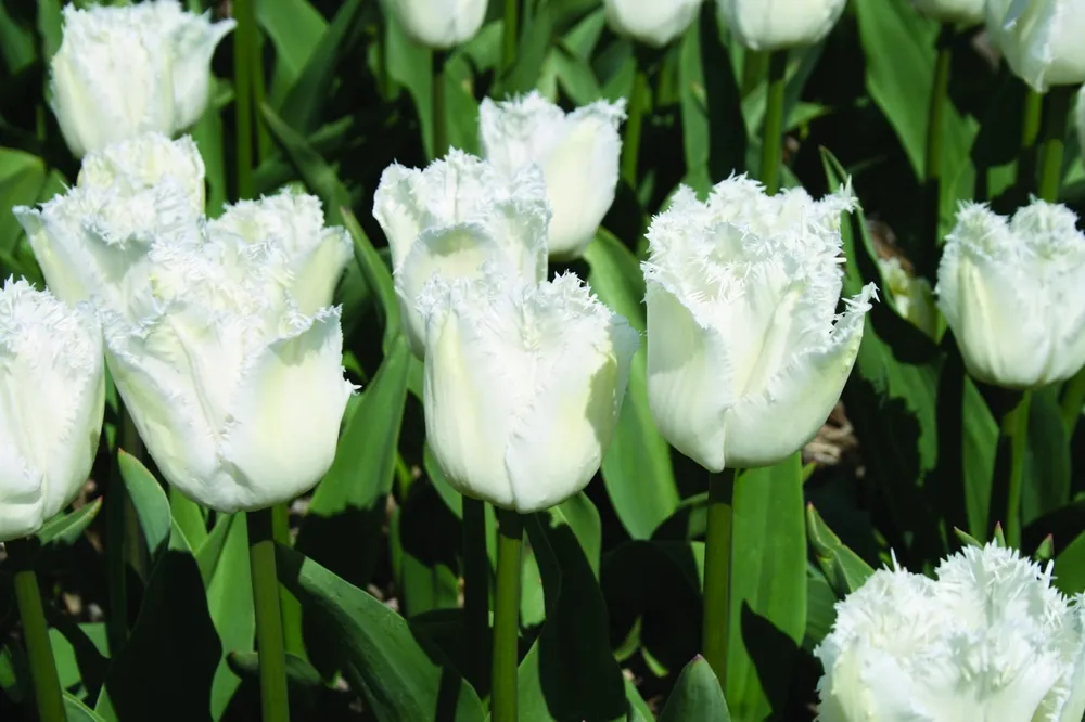 Тюльпаны нуждаются в регулярном поливе, особенно во время цветения. Поливать нужно обильно, чтобы вода увлажнила весь земляной ком, но избегать переувлажнения. В период активного роста (весна) и формирования бутонов полив должен быть частым — 2-3 раза в неделю. В засушливую погоду поливы можно проводить ежедневно. Во время цветения достаточно поливать один раз в 2-3 дня, а после отцветания полив постепенно сокращается до минимального уровня.