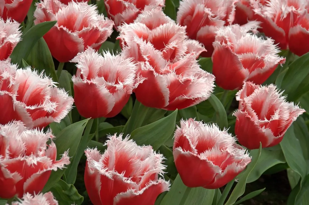Цветы этого тюльпана напоминают живописное полотно, где яркий красный переходит в глубокий бордовый и даже малиновый оттенок. Необычный рисунок с контрастными проявлениями цвета словно создан искусством природы.