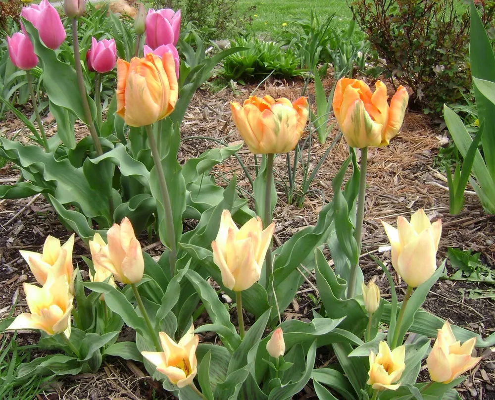 Лучше всего использовать комплексные удобрения с равным содержанием азота, фосфора и калия. Подкармливать тюльпаны следует каждые 2-3 недели с начала вегетации до момента окончания цветения.
