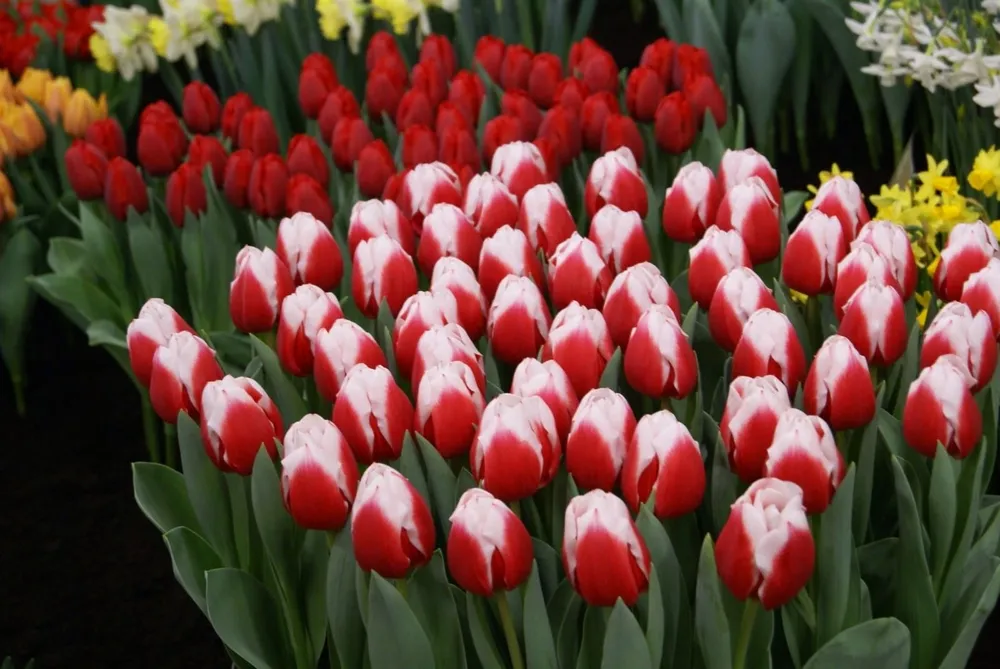 Например, классический красный тюльпан ‘Монмартр’ имеет более яркий, насыщенный красный цвет без белой каймы.