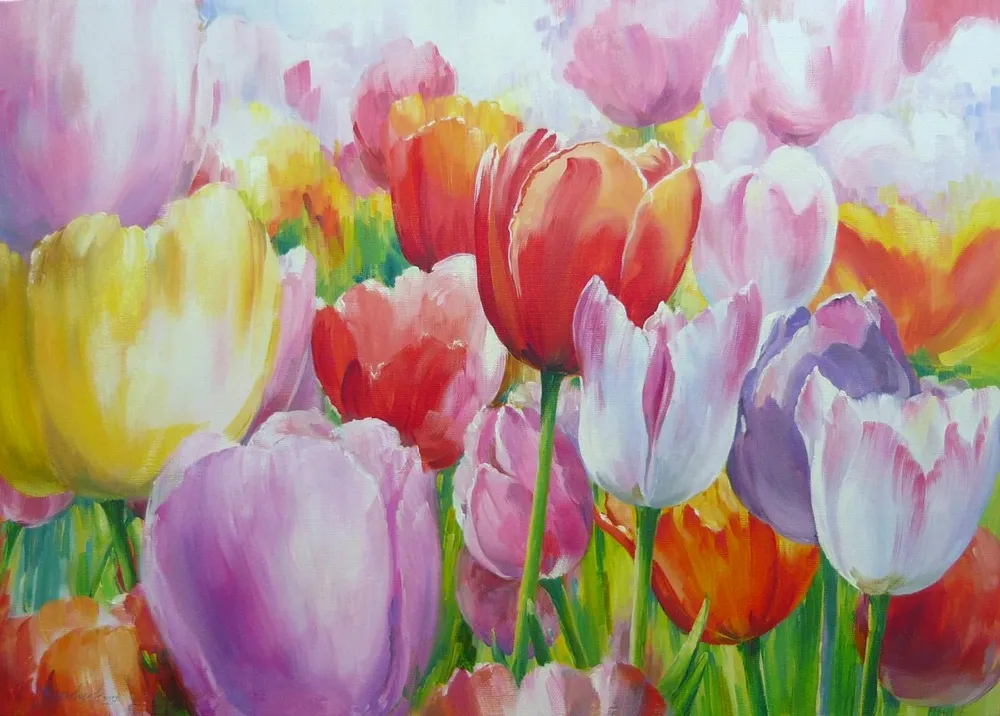 В сравнении с другими сортами тюльпанов, Художник выделяется своей уникальной окраской и формой цветка. Например, у сортов группы «тюльпаны-лианы» цветы более простые, а у сортов «парадных» – более крупные бутоны.