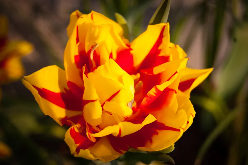 Тюльпан Монте Флейм – это сорт, который завораживает своей яркостью и неповторимостью. Его огненно-красные лепестки с контрастными лиловыми прожилками напоминают языки пламени, поэтому название сорта весьма уместно. Этот тюльпан относится к группе партенокаприфиумных, что означает, что он обладает более крупными и махровыми цветками по сравнению с другими видами.