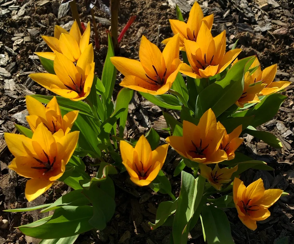 - Почву вокруг тюльпанов мульчировать слоем из древесной стружки или торфа для сохранения влажности и предотвращения роста сорняков.