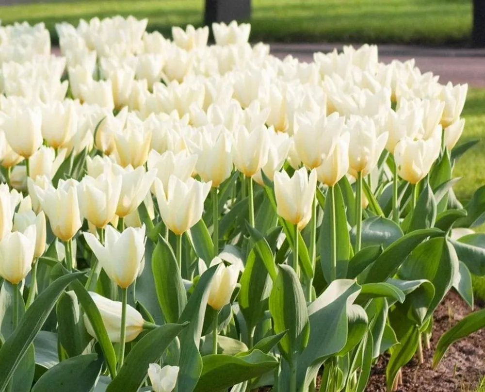 - Для более пышного цветения тюльпанов Пуриссима Дизайн рекомендуется высаживать их в групповых посадках.